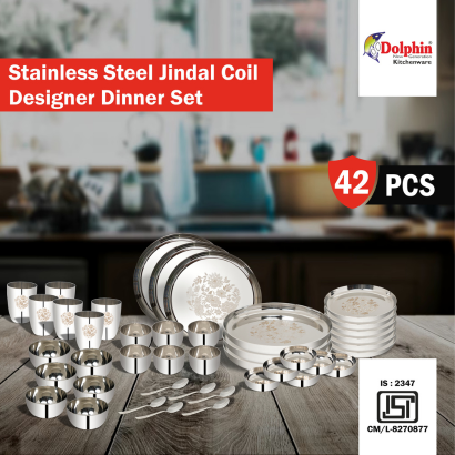 Stainless steel Designer Dinner Set made from Jindal Stainless Steel rust free with elegant design comes 36/42 pcs.